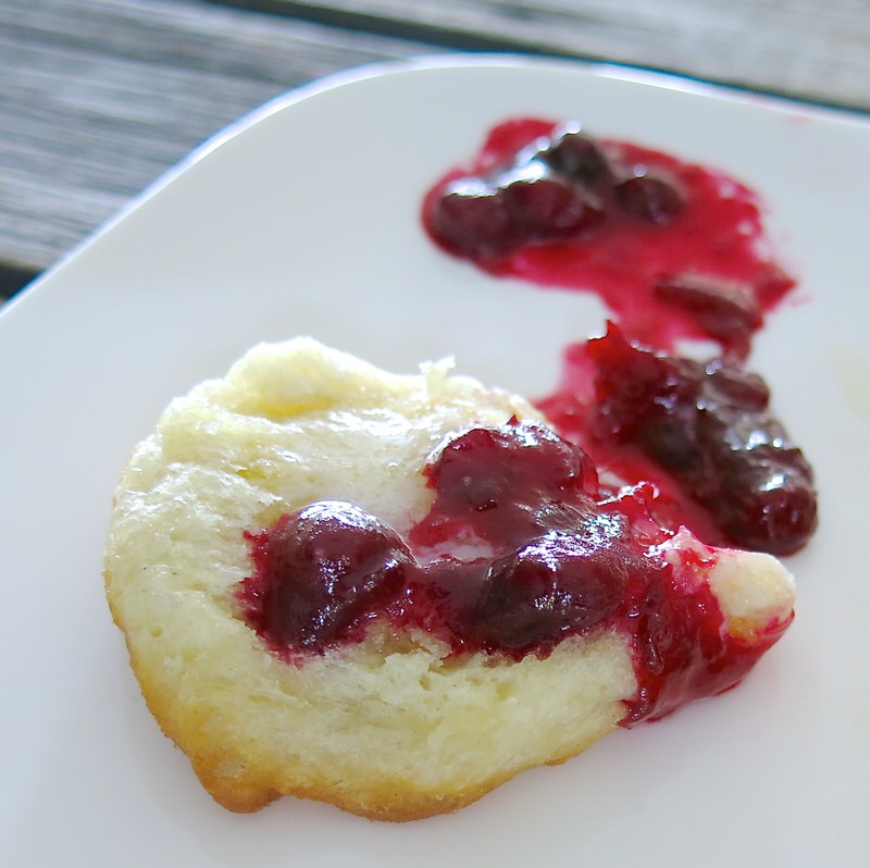 This Partridgeberry Jam is topping a scrumptious freshly buttered hot Touton that we made immediately after the jam.