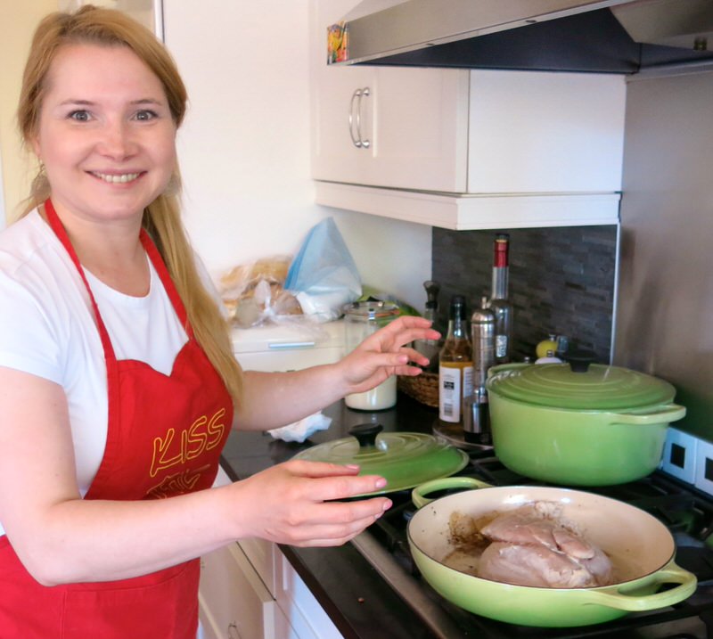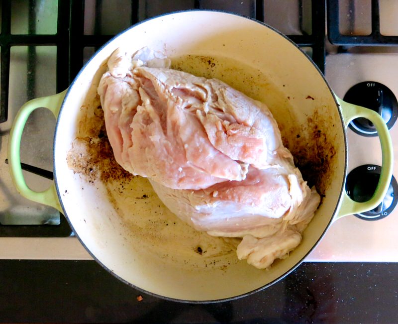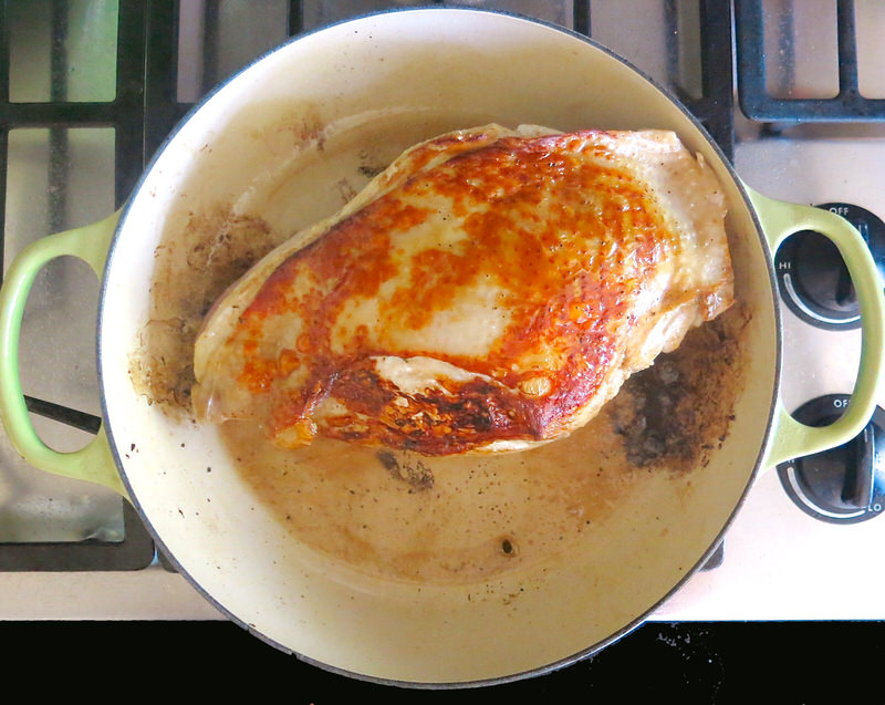 Larissa and I cooked together this past June and I have written about the first portion of this recipe: The Turkey Leg Roulade as well as her Apple Beet Soup with Feta that she serves first. You can see the video for breaking down the first part of the turkey in The Turkey Leg Roulade article. Removing the breast from the bird, Part 2 of her video, follows, where she removes the breast for this recipe.