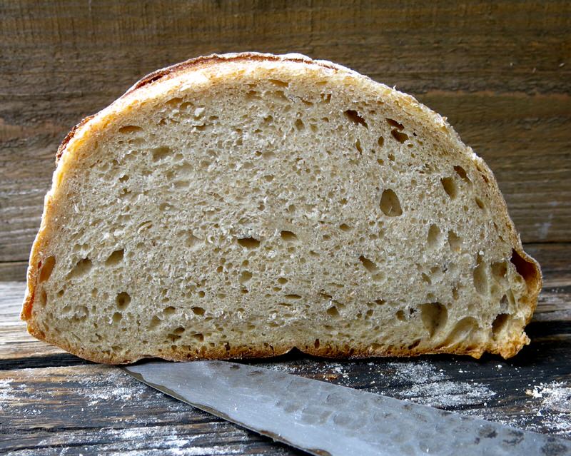 I had many a dense loaf. This would be my eighth, or so. I would be happy for even more holes, whereas when I first sliced into my loaves, holes upset me.