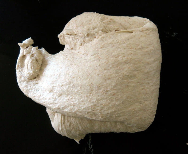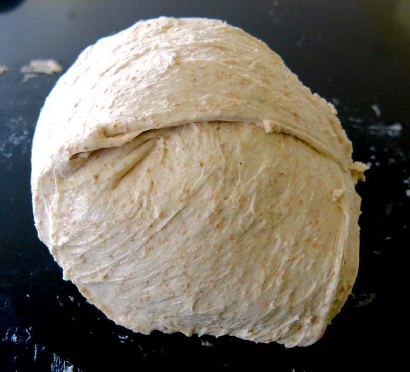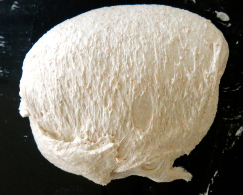 At first, it will slouch, but as the process is repeated, you will notice the dough no longer slouching, but holding its own as the gluten strengthens. When it retains the shape of a ball, you can stop this process.