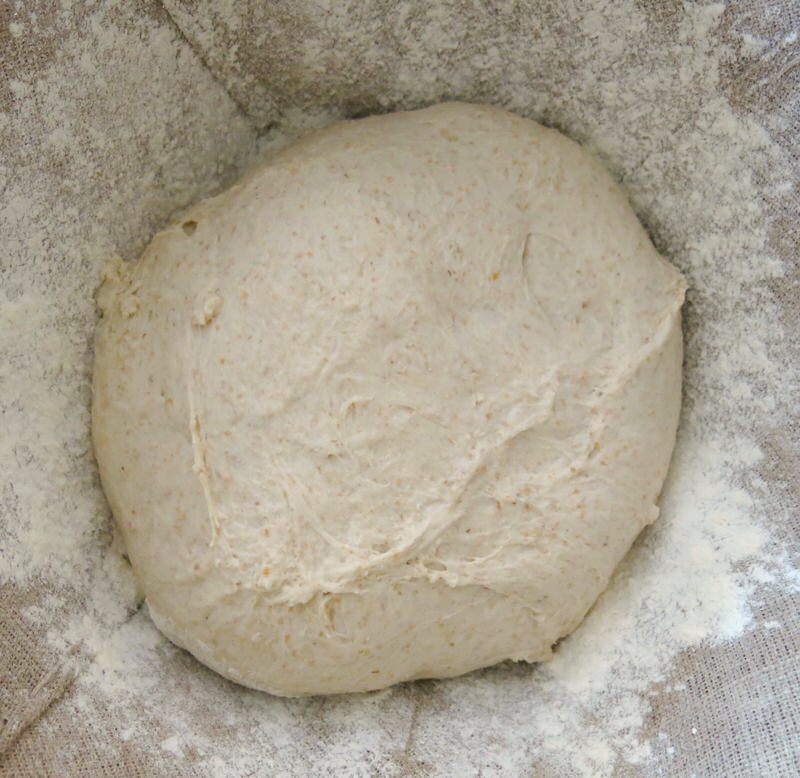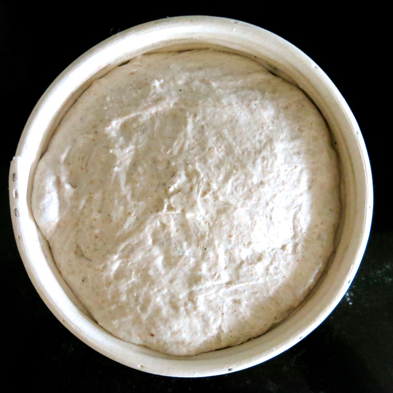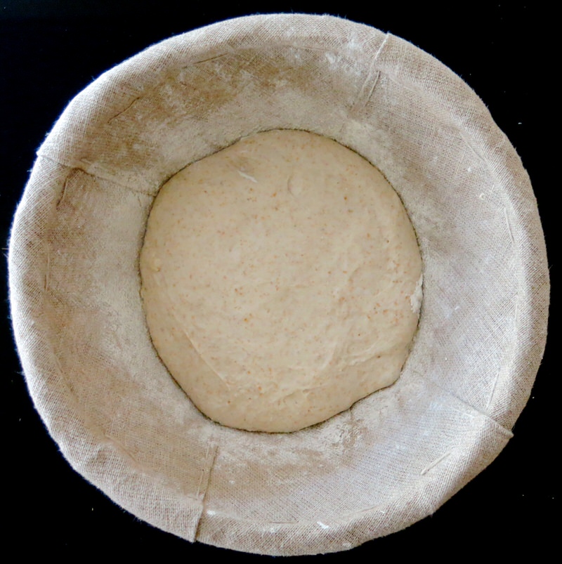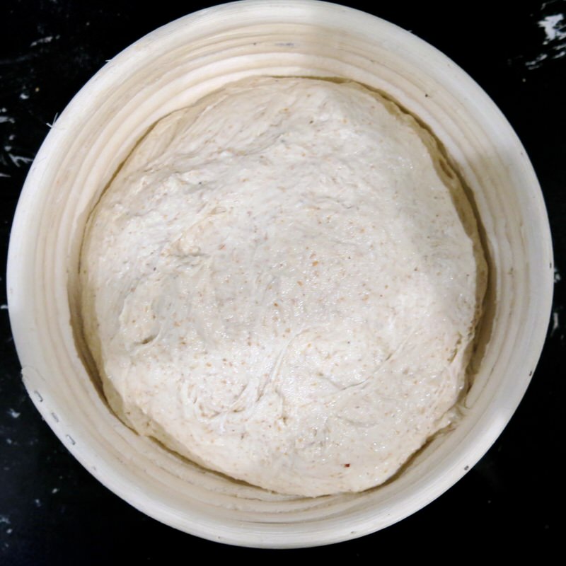 - Place dough ball upside down in lined Banneton with D-shaped spatula or bench scraper; cover with tea towel and rest 1-2 hours OR