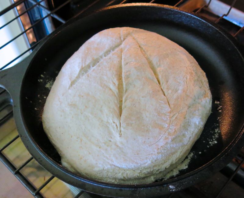 Look at the gorgeous rise. When ready to bake, preheat the oven to 500F and have the heavy cast iron pan in the oven a good 20 minutes at 500 F, or longer.