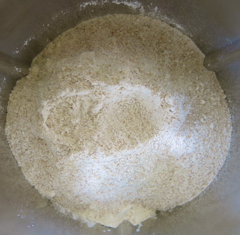 340 grams of sponge went into my Thermomix bowl followed by 230 grams Highwood Crossing organic unbleached flour.