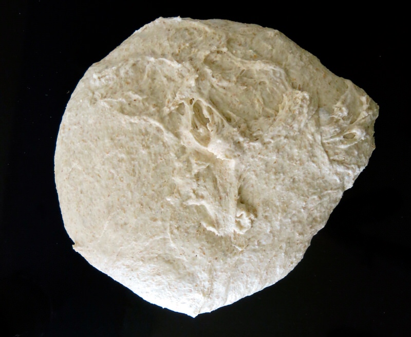 Above, the sourdough was kneaded for a very short period, until it just pulled away from the bowl, then covered with plastic wrap inside the bowl to avoid movement and rested for a good 2 hours, or overnight in the fridge.