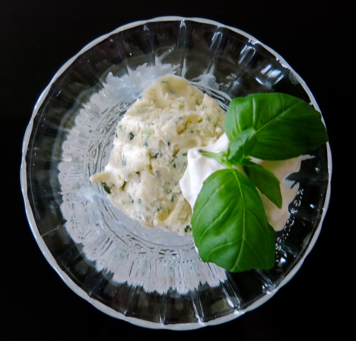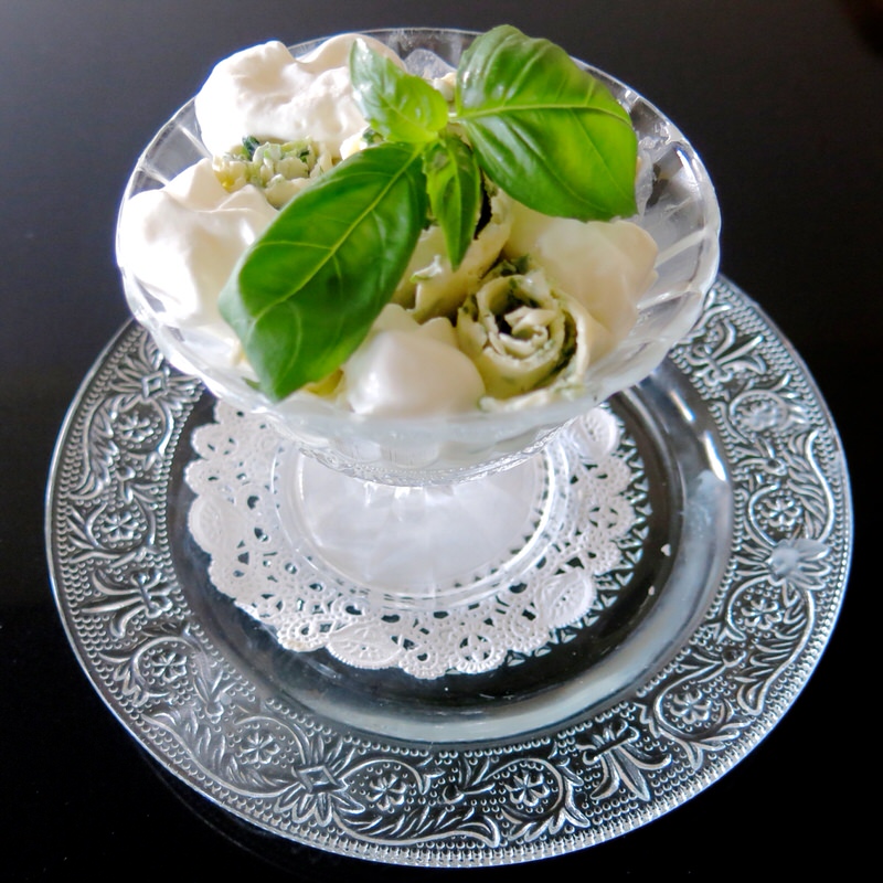 Rolling Desserts Ice Cream: Frozen Basil Custard “Marble Slab Style”