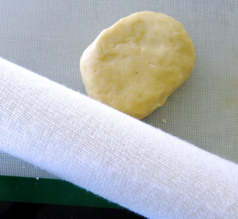 Really appreciate that this dough does not need to rest. It can be refrigerated, but is best to use immediately, if possible, as it hardens chilled and requires quite a bit of warm-handed kneading and coaxing to regain the pliable state required to roll.