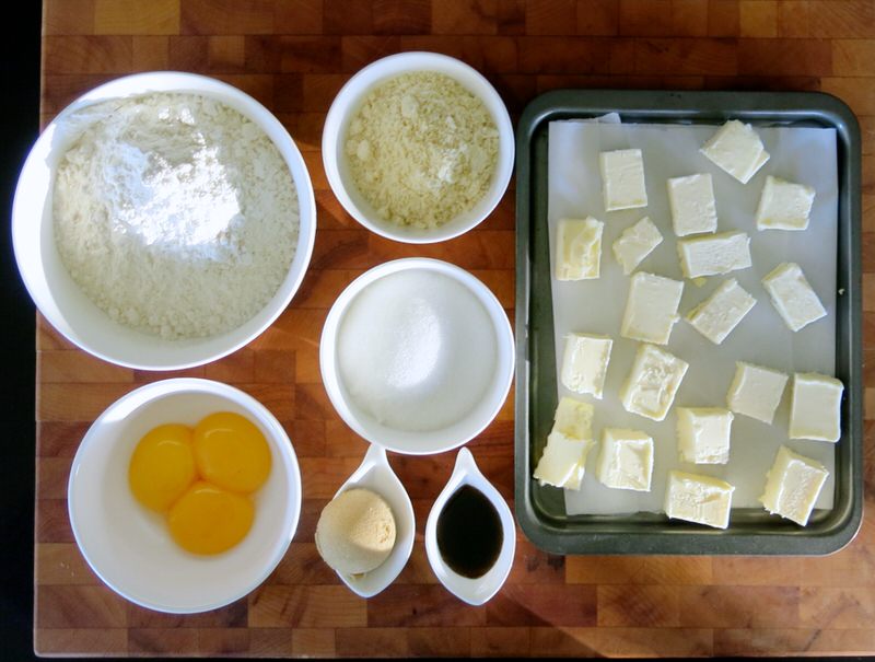 Look at the above delicious assortment of real food ingredients. Butter must be chilled in the freezer. Read the recipe carefully!