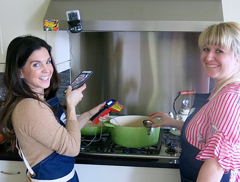 We have three thermometers set up with cel phones and cameras. Yup. That’s how we roll these days. Emily’s objective for cloudberry creation day: “have some fun in the kitchen with friends”. That, we did!