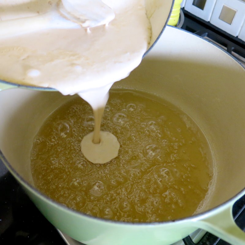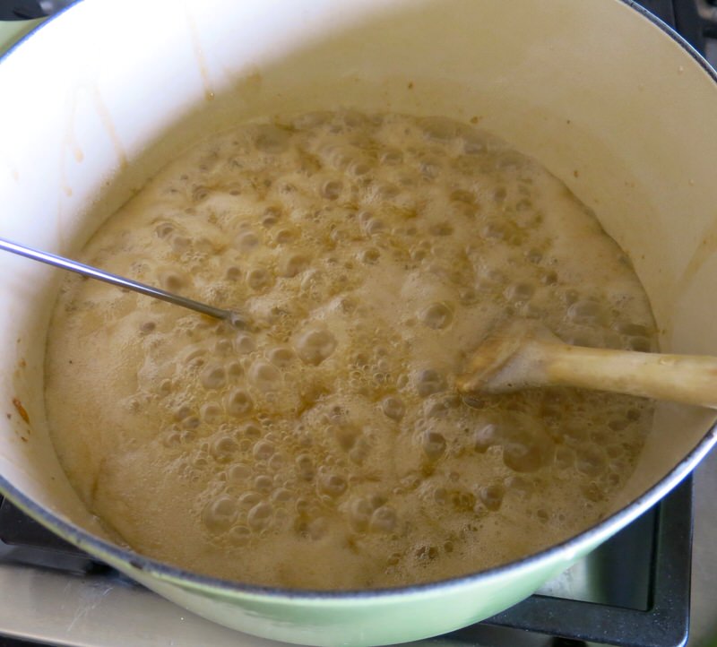 - Using candy thermometer, bring mixture to a boil over medium-high heat without stirring; once mixture reaches 250°F/121°C, remove from heat