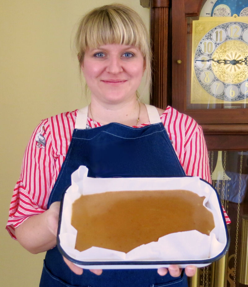 Together we made the caramel, and other recipes, then time for home. So, a couple of days later, Emily and her daughter, Cela, dropped by for lunch, caramel wrapping and Cloudberry Tart tasting. We had made the purée for the tart and the caramels together, so of course the tart had to be sampled and celebrated!