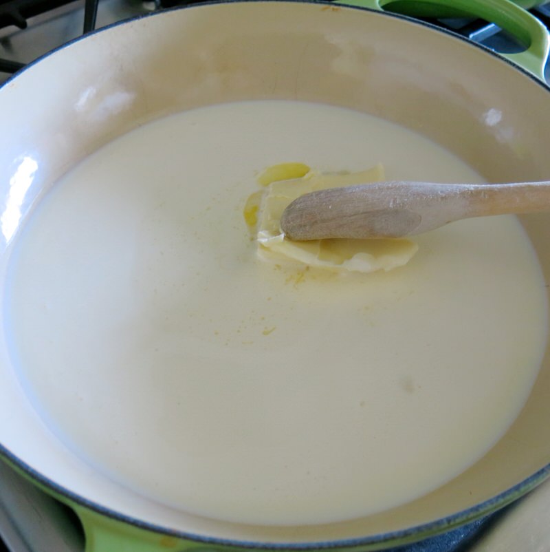 - Combine cream and butter in medium pan; warm over heat until butter melts
