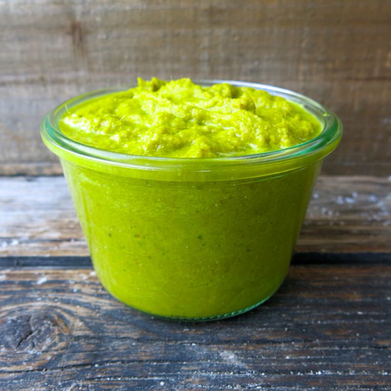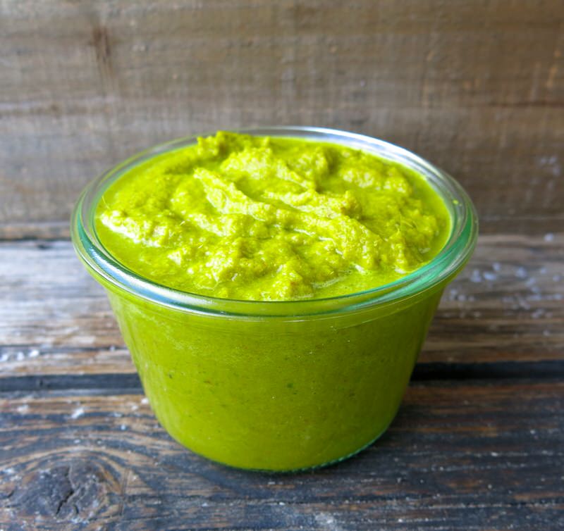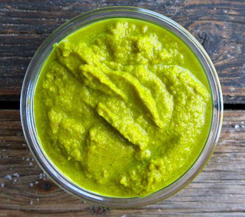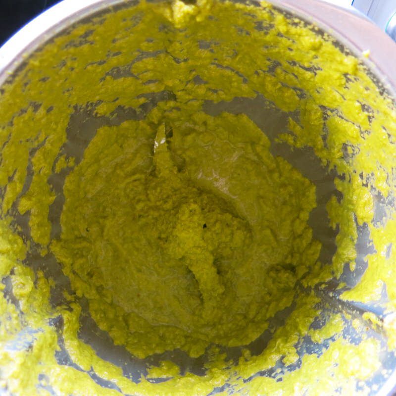 Thirty seconds later, completely combined. Scraped down to the bottom of the bowl and one more whirl of the blades for another 30 seconds and a fine paste emerges.