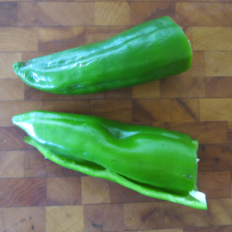 - 70 grams or 2.5 ounces fresh long green chilies (Anaheim) stems and seeds removed
