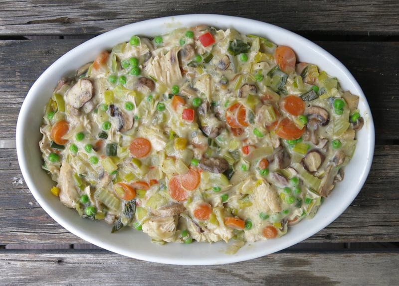 Like all casseroles or pies, the best quality ingredients you can find will elevate the flavour of the final product. Look at those carrots! The celery and peas are missing.