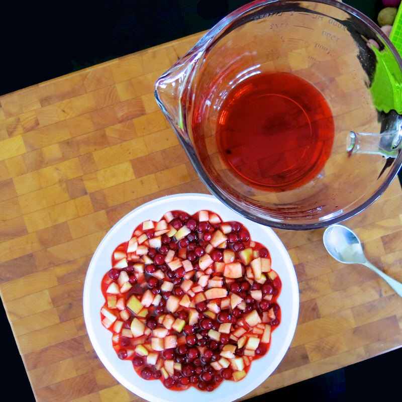 I hadn’t had made or eaten a jelly salad for over 20 years, but this bejewelled globe is completely irresistible and such a lovely compliment to rich dark turkey. I made it last Christmas for the first time, after being gifted with a generous amount of partridgeberries by my gal pal, Emily Mardell.
