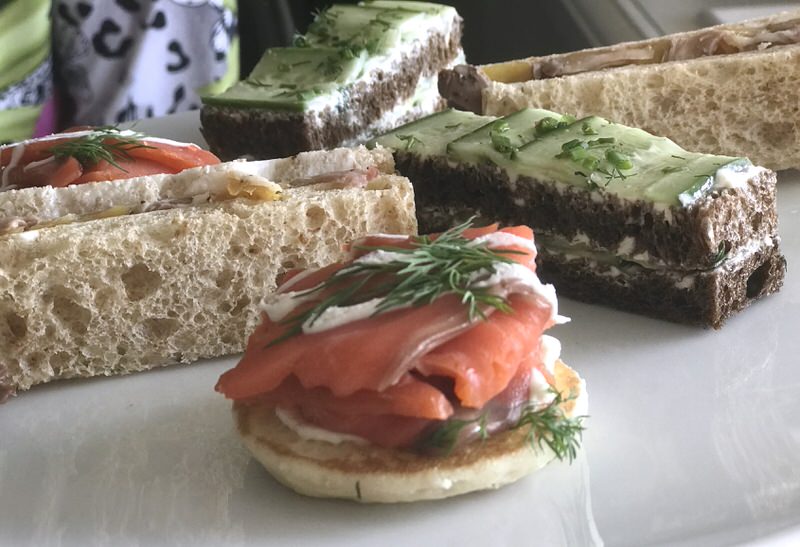 The classic smoked butter-tender salmon generously piled atop a mound of fresh dill and creme fraiche on a soft delicious bilini was my favourite savoury bite after the scone.