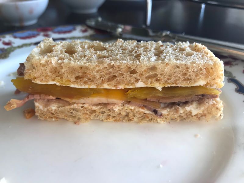 The roast beef on whole wheat had to be dissembled to spy on the thin leaves of golden earthy beet. What was that flavour? Peeking at the menu revealed it was beet! Tasty. The Cucumber on Rye with Cream Cheese is always a favourite. I could not finish 2 of my savoury bites and couldn’t eat any of the sweet bites. I do not lie. I was so worried about there not being “enough”, yet there was certainly more than enough. I enjoyed the sweets later in the evening in my room. Yes, they do pack your leftovers, even at The Empress.
