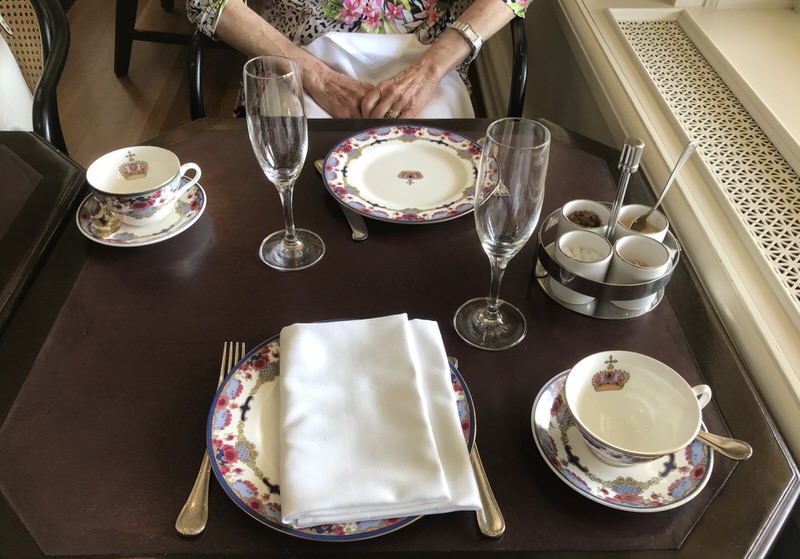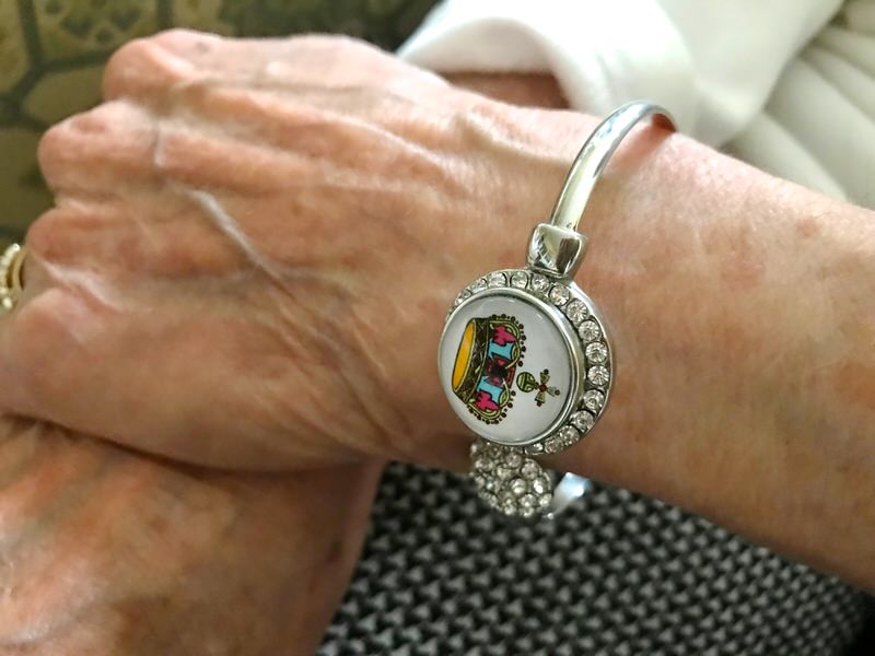 As I told her later, “In the perfect world, I would have browsed around the shops and the internet in advance to have the perfect memento to honour the occasion wrapped boxed and presented to you at the end of our tea.” But, the world I live in is not perfect. This came close. We shopped after in the little hotel shops on the way to our room when I spied the lovely bracelet above, had put away not as slyly as I would have liked and picked it up the next morning to present to her as a representation of the love we share and of her royal right to her position as HRM. Of course, those are all diamonds! And the crown is real, too! She loved it.