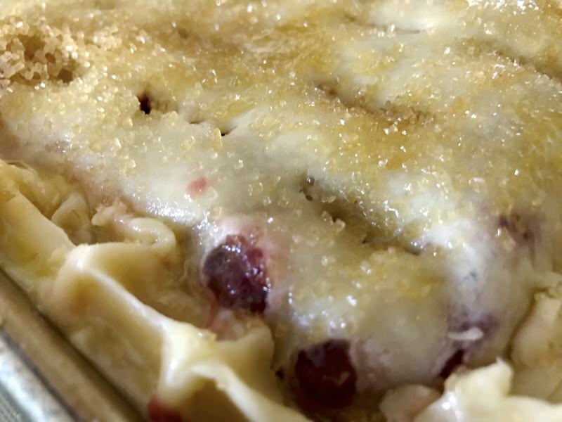 Docked to enable the tart little cherries to breathe and bubble beneath the flakey pastry topping while baking into golden sublimation.