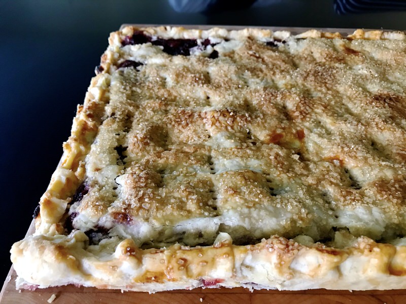 We Canadian prairie folk are so staid in our ways. “When something works, why change it?” is our mantra and we live our happy, simple lives. Today, I switched up the quintessential prairie pie to a slab pie and what a lovely little moment it was.