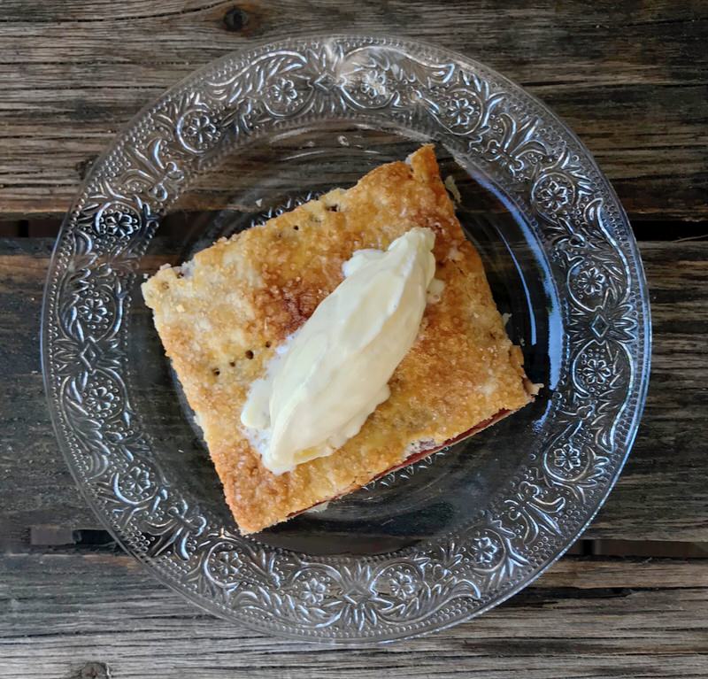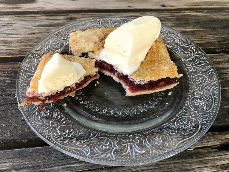 Warm with ice cream if at home… or room temperature held in one’s hand at a picnic. Perfect either way!
