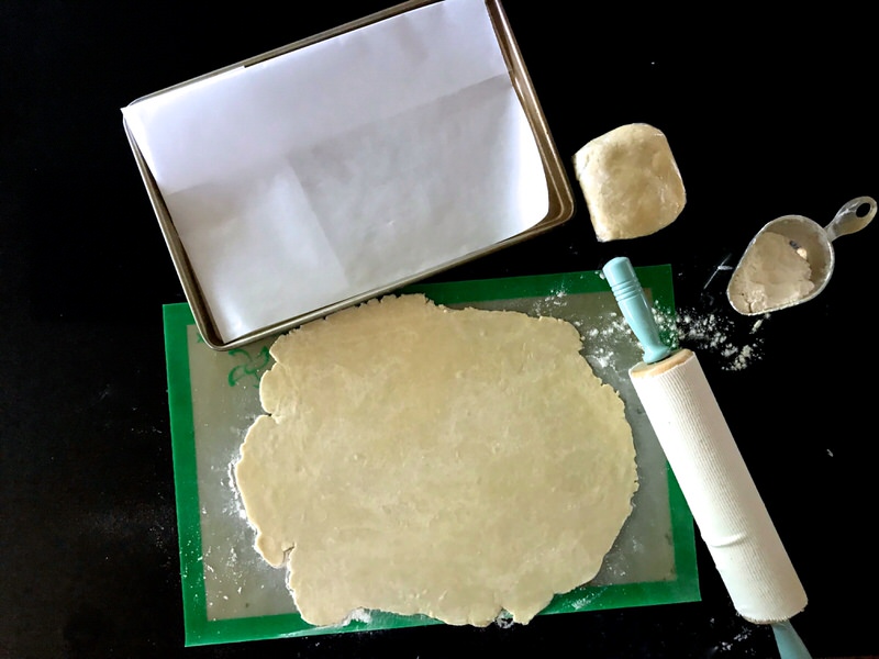 I didn’t find it so difficult rolling the dough. Setting the pan beside motivated the process and moved the bottom shape along well. I did layer the sheet pan with parchment for easier removal and would say that is essential.