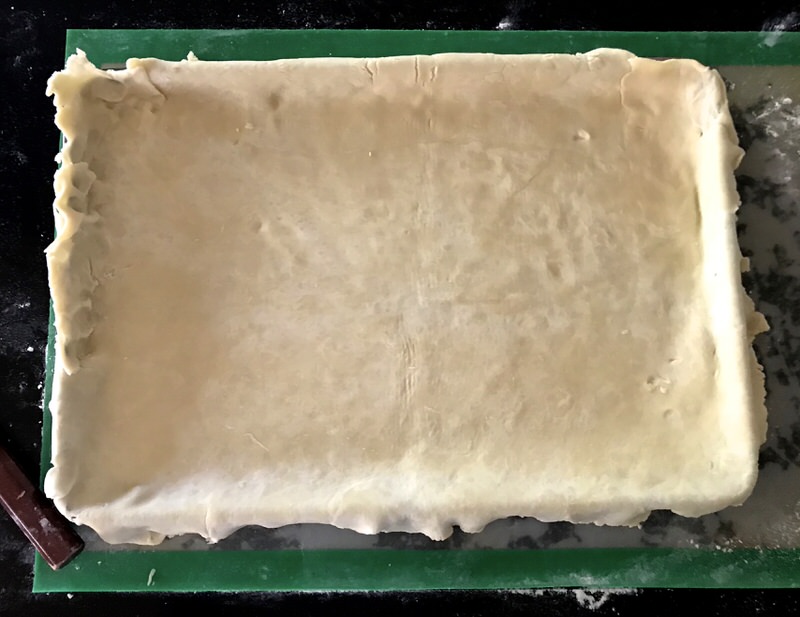 - Repeat with second portion of pastry dough (1 ½ discs) but roll into 11x16 inch rectangle; set aside