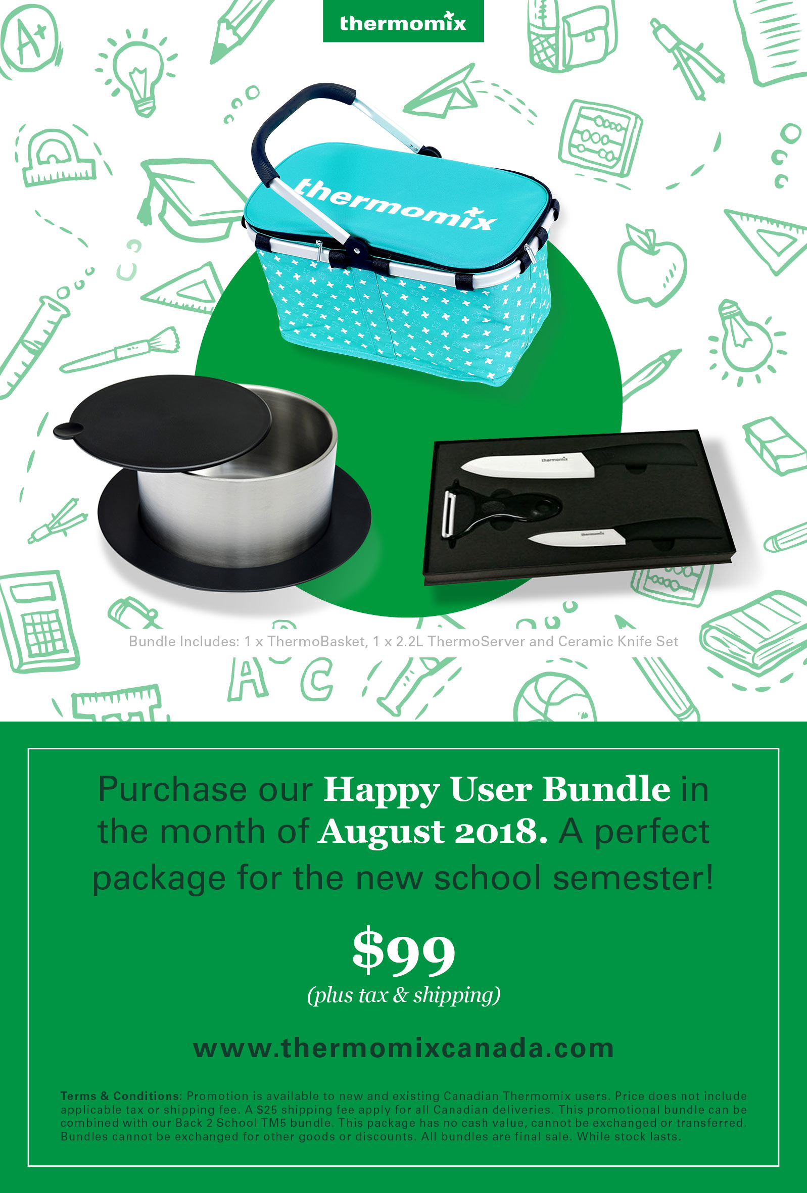 If you are interested in purchasing a Thermomix and have been putting it off, now is the time. The price is increasing by 65 dollars September 1. If you are a Thermomix Owner and have been wanting the ThermoServer, now is the time. Look at this wonderful and rare bundle available to owners, below!