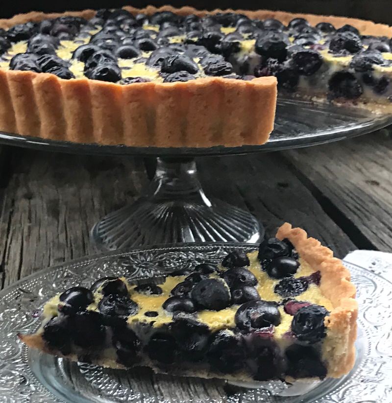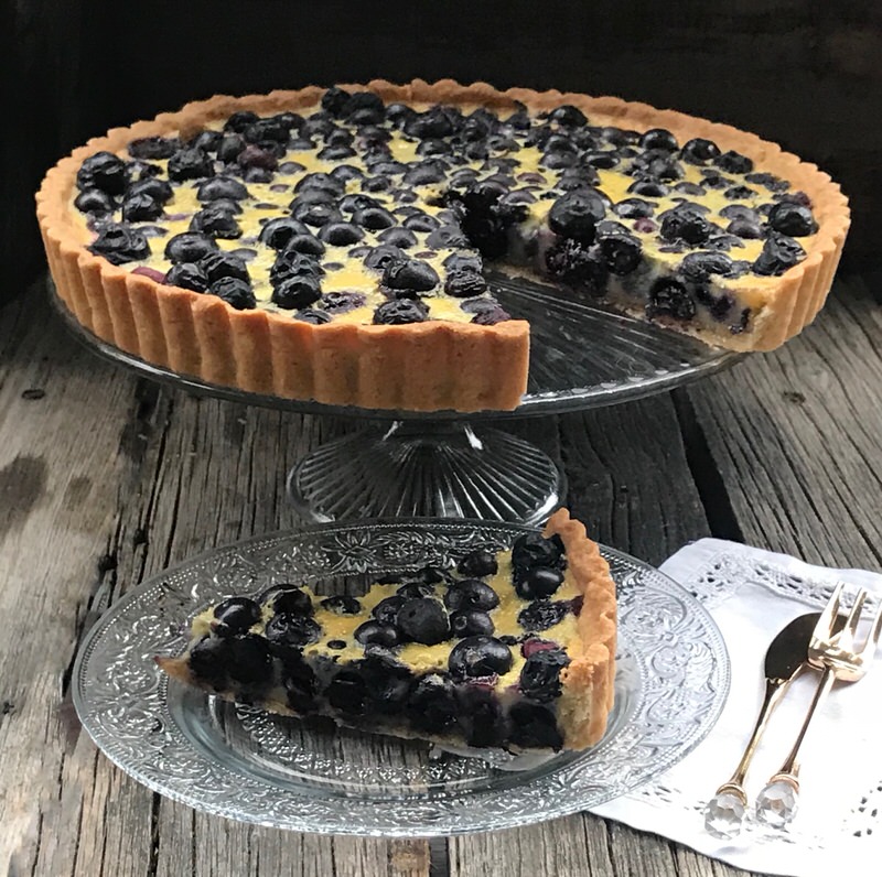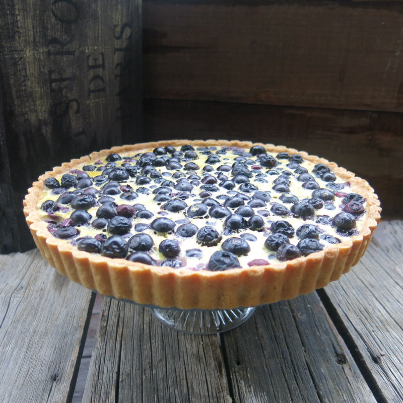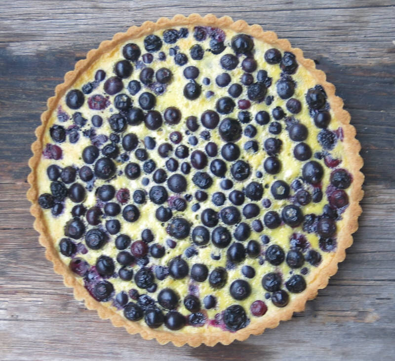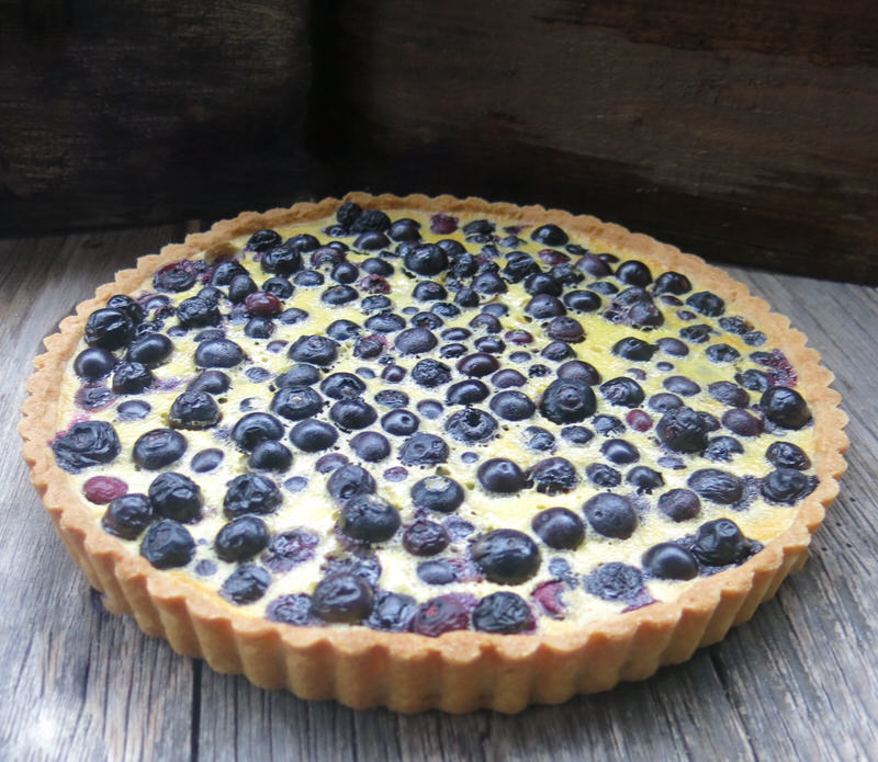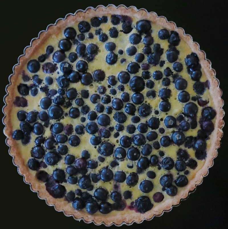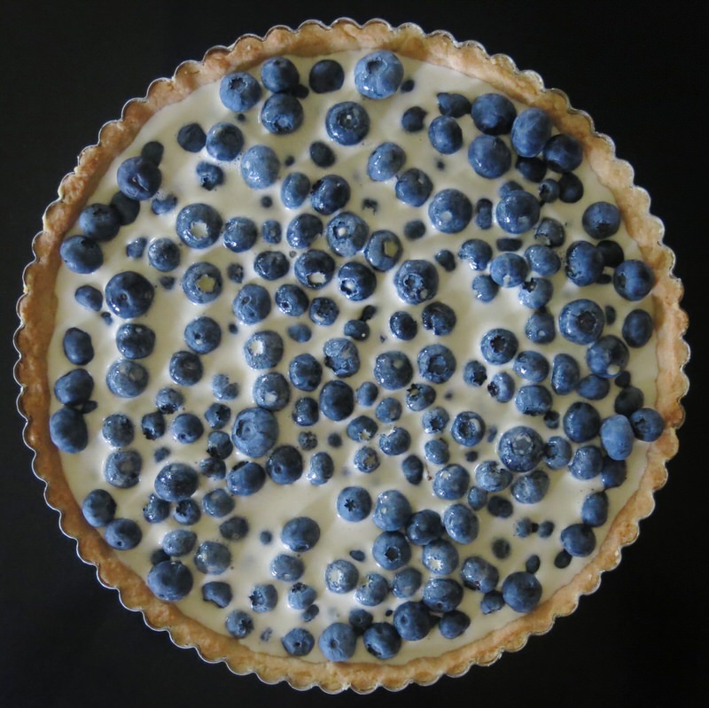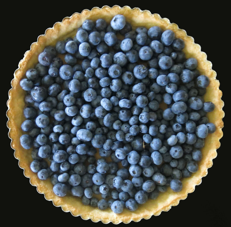 This specific recipe was inspired by Chef Don Pattie from Winnipeg MB who told me he got the idea from Chef Bo Friberg (1940-2015) a pastry instructor with the CIA for many years. Don contributed recipes and tested a few of the recipes. One of our consultants contributed the Sour Cherry Clafoutis which is the traditional French Custard from Limousin, France. Don tested it a few times. Once the traditional way and once with a crust. I was sold! Step one: Don’s Sweet Paste or pâte sucrée is blind baked and filled with 500 grams of fresh blueberries. I guess that’s two steps!