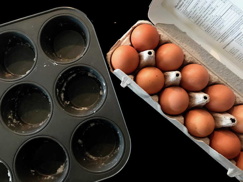 - Whisk eggs and seasonings together and divide evenly into muffin cups