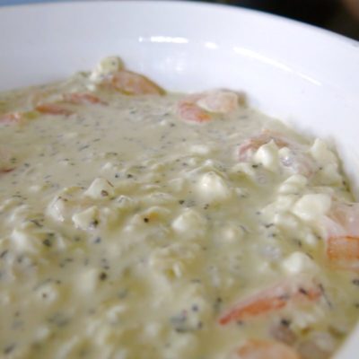- Sauté onion in remaining butter; add cream cheese, basil, salt and pepper and turn off heat when cream cheese is partially melted; continue to stir until cheese is fully melted via the retained heat of the pan