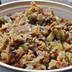 So simple, so delicious and though some think a turkey doesn’t cook properly with dressing stuffed inside its cavity, I beg to differ. If you do it properly, pay attention to the cooking time and temperature, you will not get ill. Of course, you can make it and bake it beside the turkey. Will it taste the same? Heck, no! Tasty, though, but come on! There’s nothing like the fat-laden dressing spooned out of a turkey fresh from the oven. Moist? Understatement. Sooooooo goood.