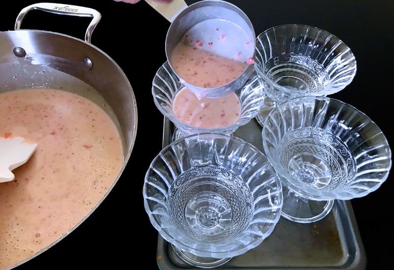 - Remove from heat and whisk in strawberries, Swerve and vanilla extract; divide among ramekins or dessert cups and refrigerate until set (2 to 3 hours)