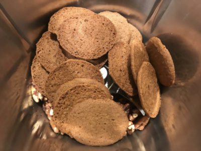 - Place pecans and ginger cookies in mixing bowl; combine for 5 seconds at speed 6-8 until fine