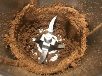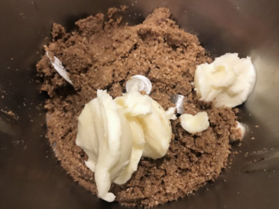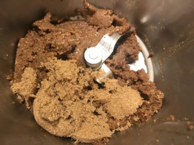- Add melted butter and brown sugar; combine for 5 seconds at speed 4 until fully incorporated (ingredients will be moist)