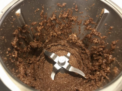 Through the hole in the lid of the mixing bowl set for 5 minutes at speed 2 without heat, the butter is dropped onto the blade, bit by bit until fully incorporated and to puréed into silky submission. Oh, my.