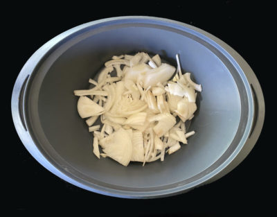 - 450 grams onion, sliced two portions: 300 grams, 150 grams
