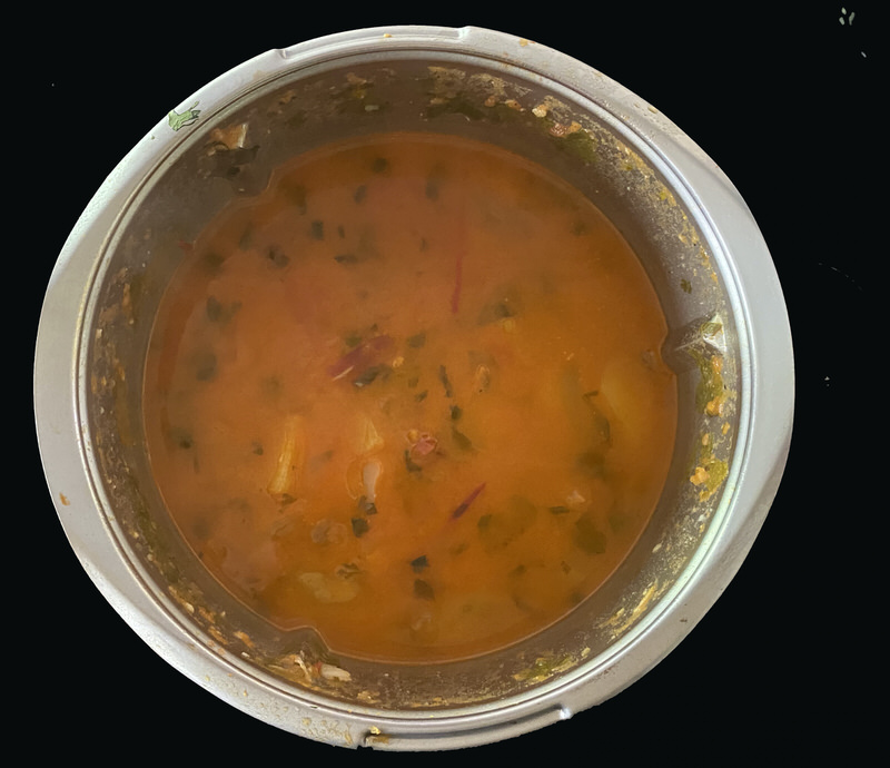 Time to take a look at the broth. The tomatoes and onions have melted into submission with an irresistible aroma demanding my attention, but I did not yet obey.