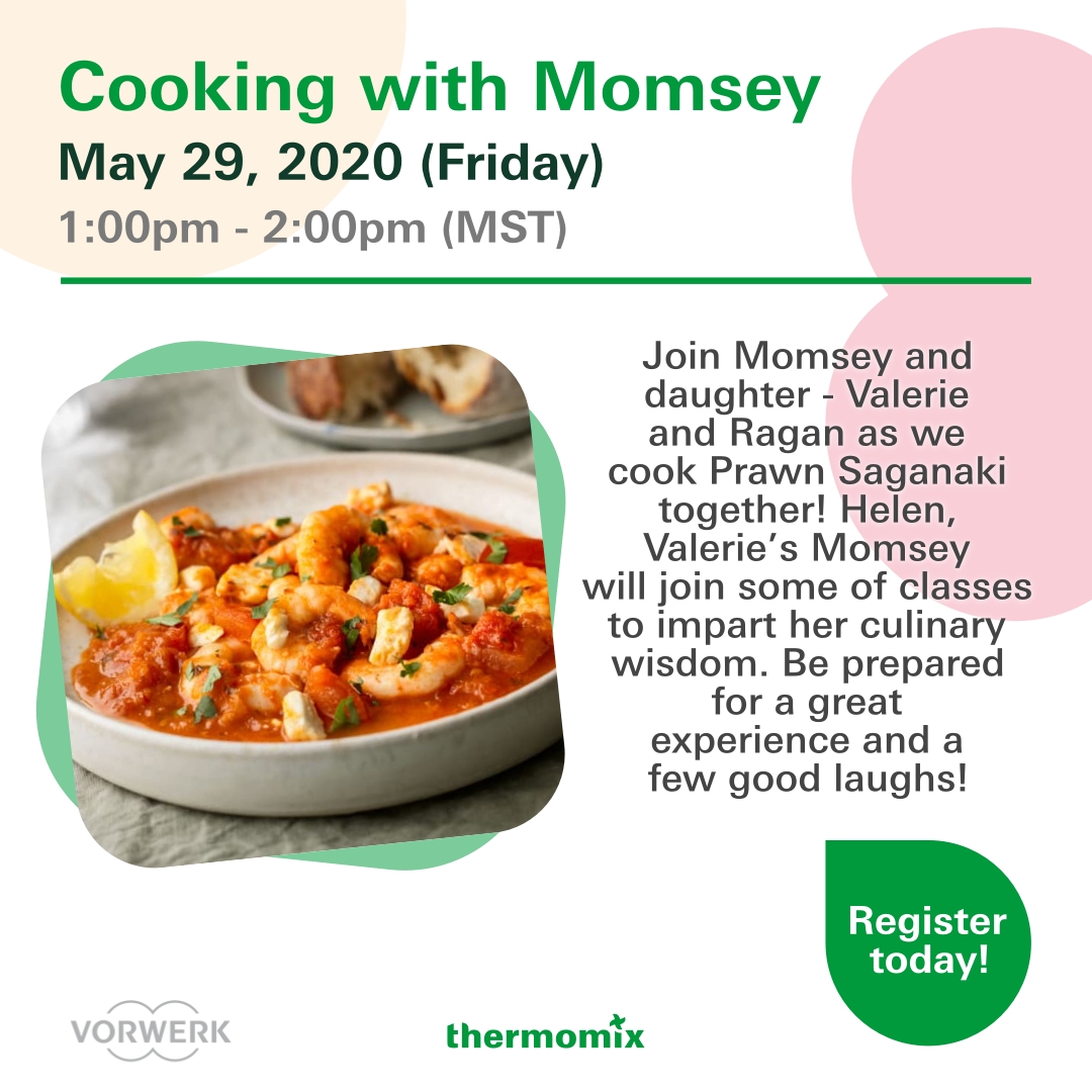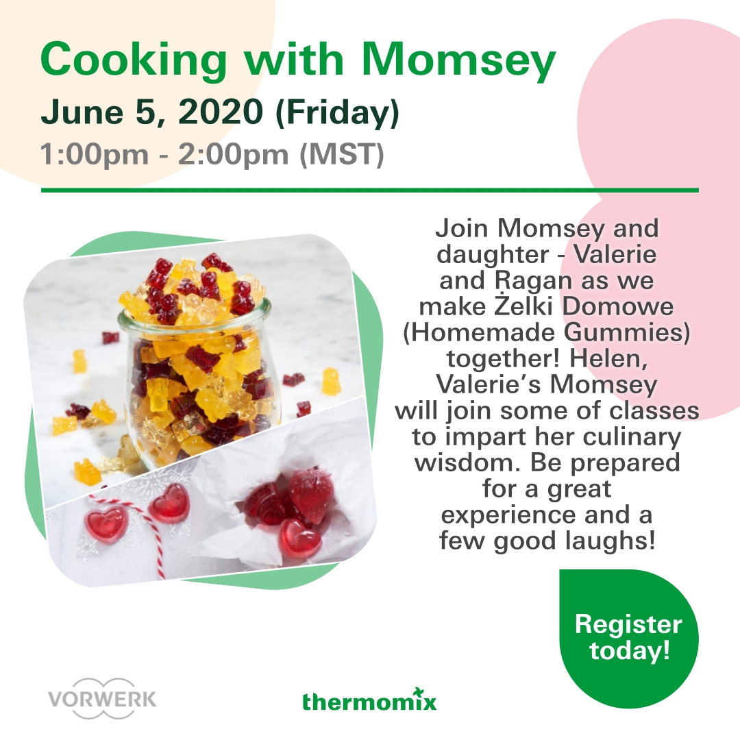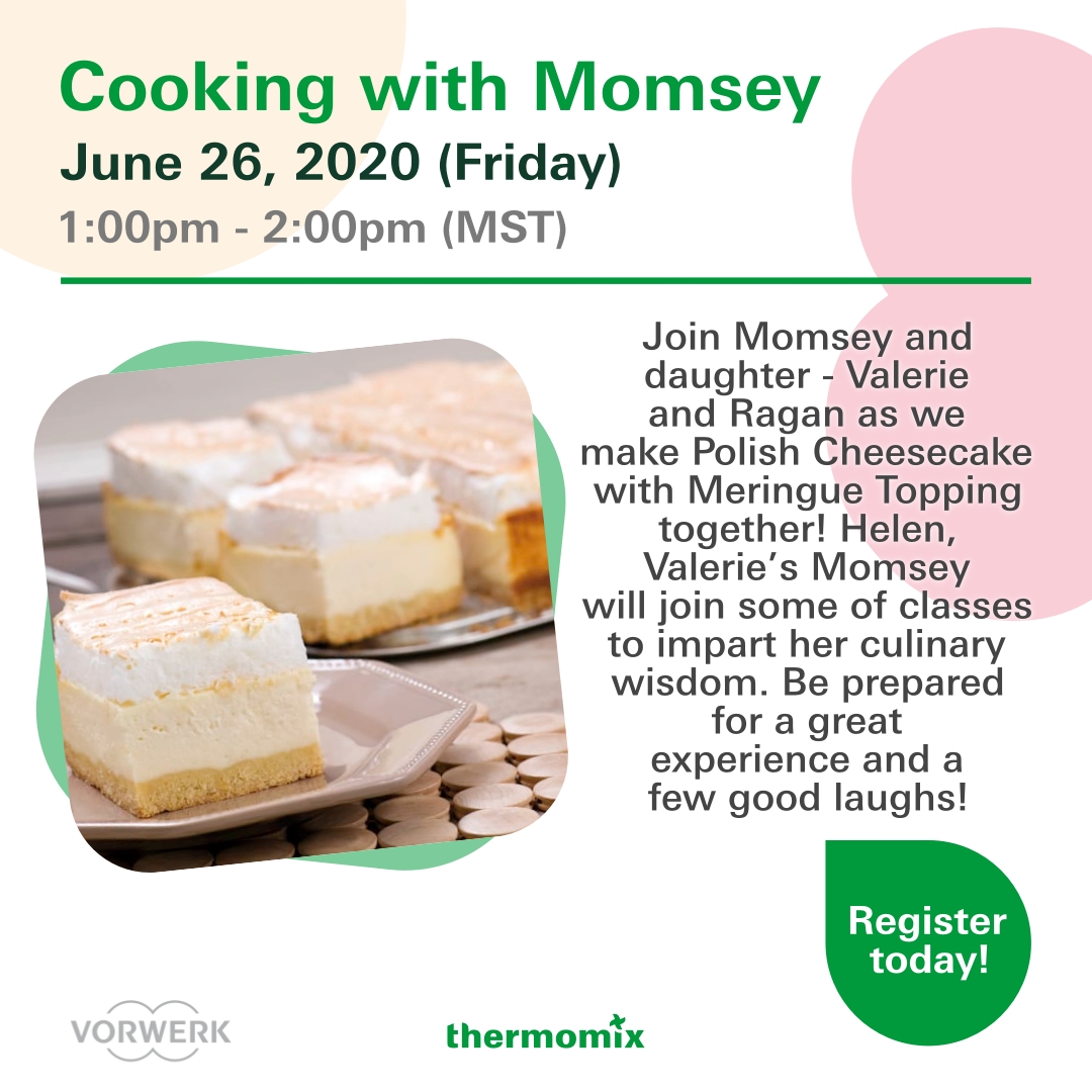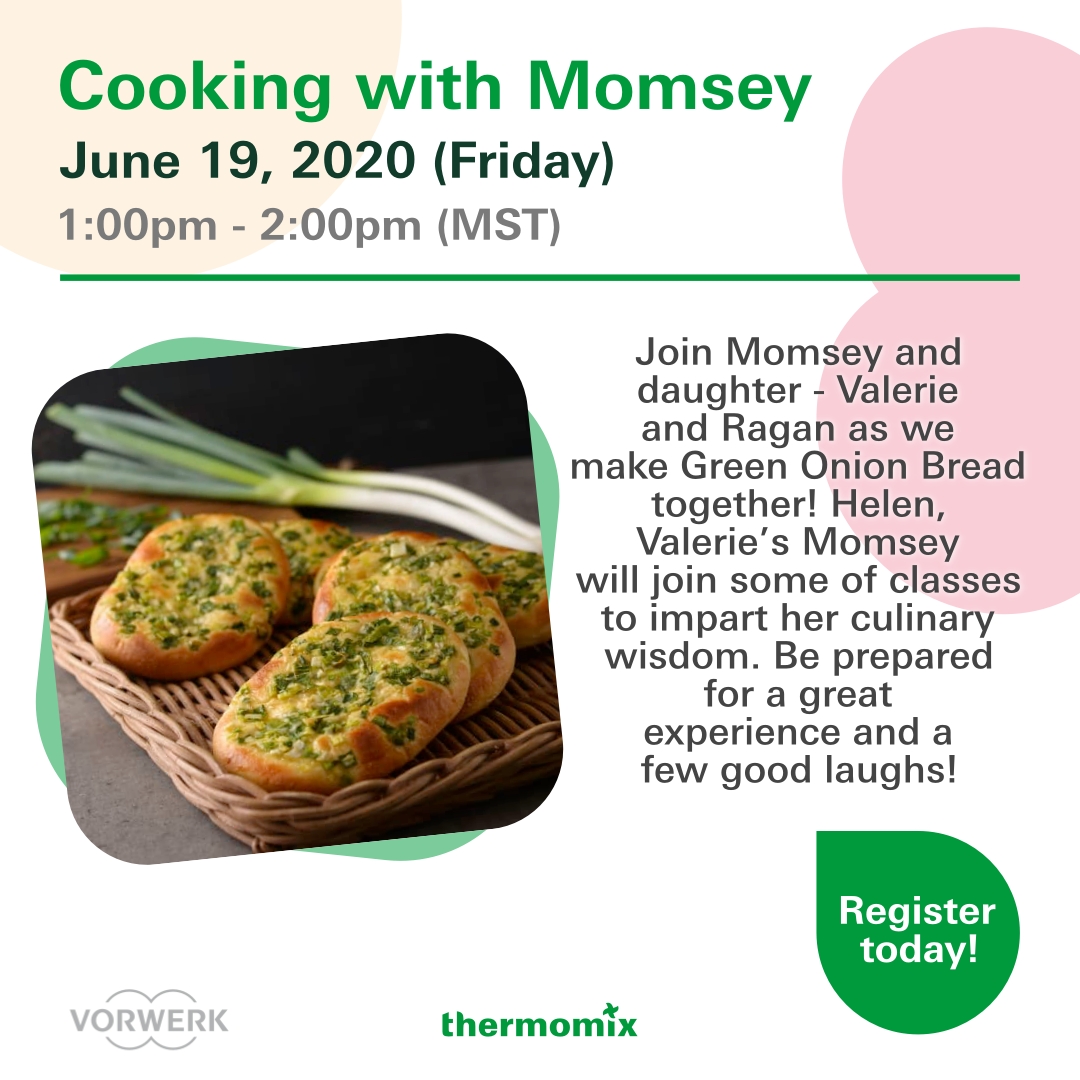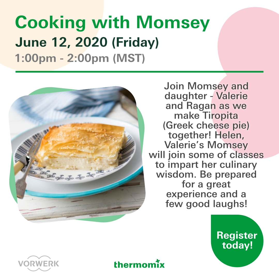 Ragan and Valerie are tickled to add a new Thermomix® Cooking Class to our Virtual online repertoire: Cooking with Momsey! Cooking Classes every Friday at 1 pm MDT.
