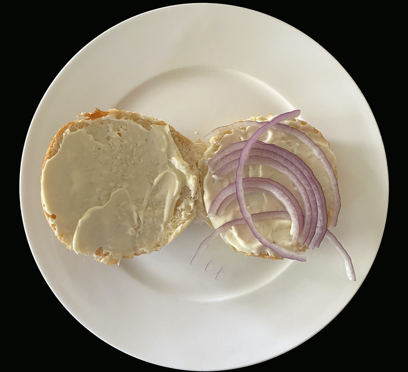 Usually, I would add a full thick round of very juicy mild onion. But, this is Covid-19 and we get what we get at the store. This red onion was HOT so this is enough.