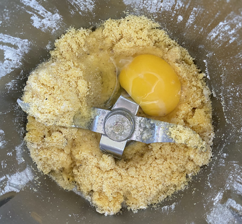 A couple of seconds mixing the butter together with the polenta, baking soda egg salt and pepper and …