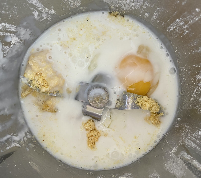 I’ve already melted the butter. It’s under the cornmeal. Love how I can do this in the same bowl effortlessly, but setting time, temperature and speed – and walking away.