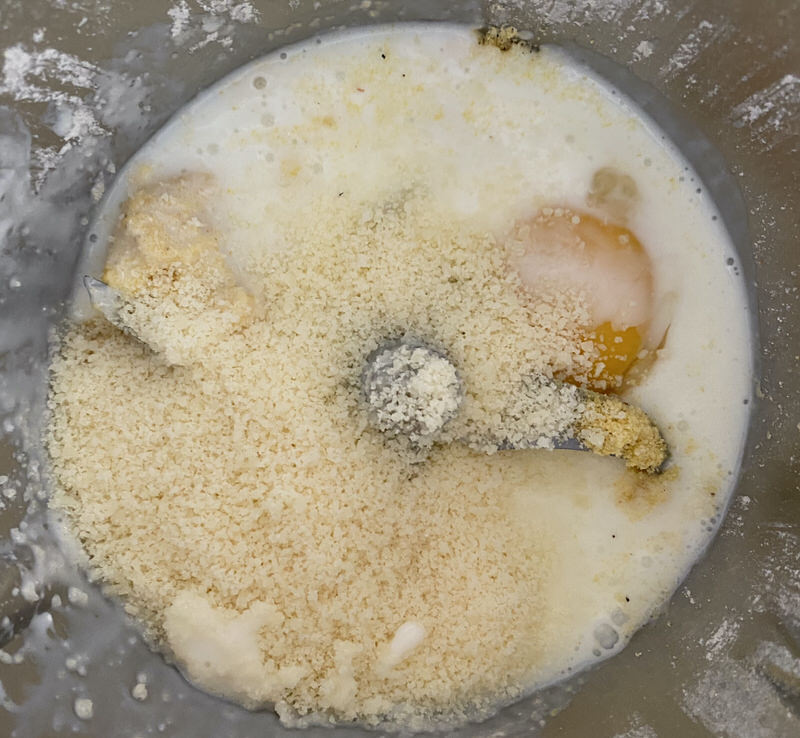 - Add egg, buttermilk and reserved Parmesan, then mix for 8 seconds at speed 4, or until smooth