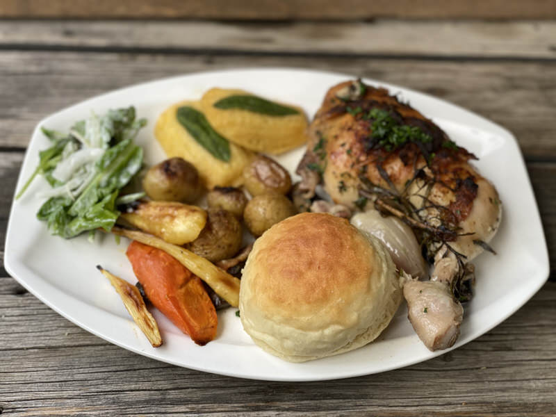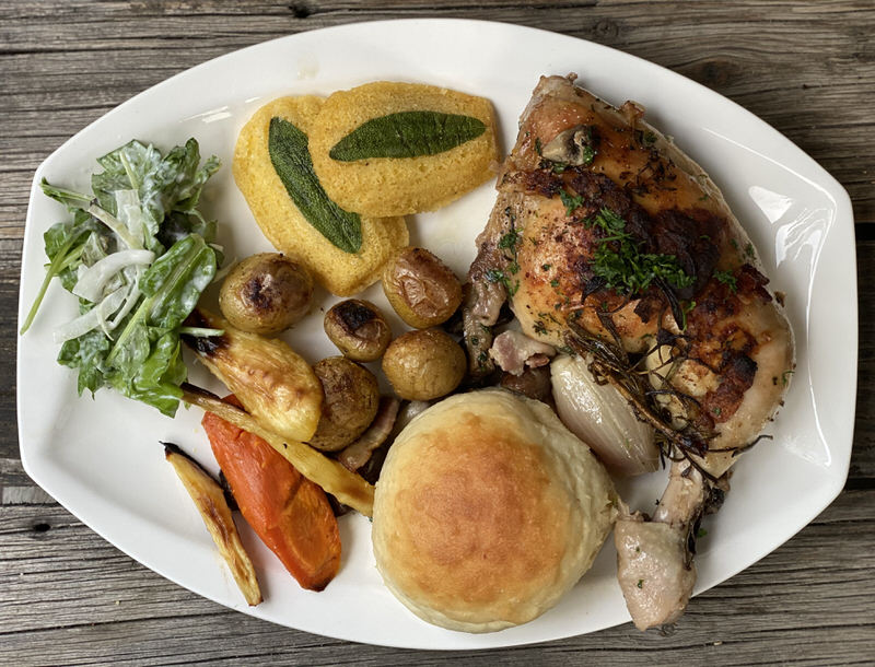 Could not resist trying the somewhat deviant but delicious Coq au Vin in the same recipe with roasted root vegetables, homemade buns and a lovely fresh garden lettuce salad.