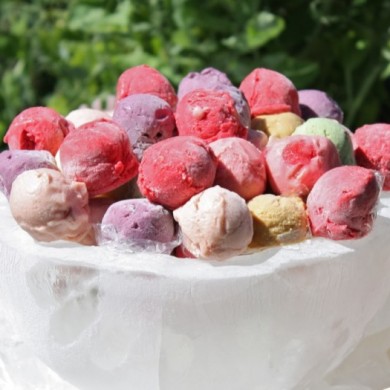 Ice Bowl with Homemade Ice Cream Balls and Miniature Cones