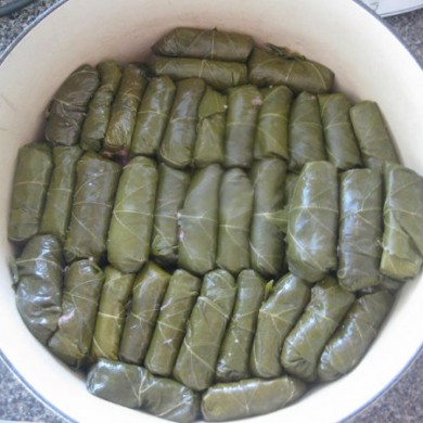 Greek Dolmates: Beef (or pork) Rolled in Grape Vine Leaves