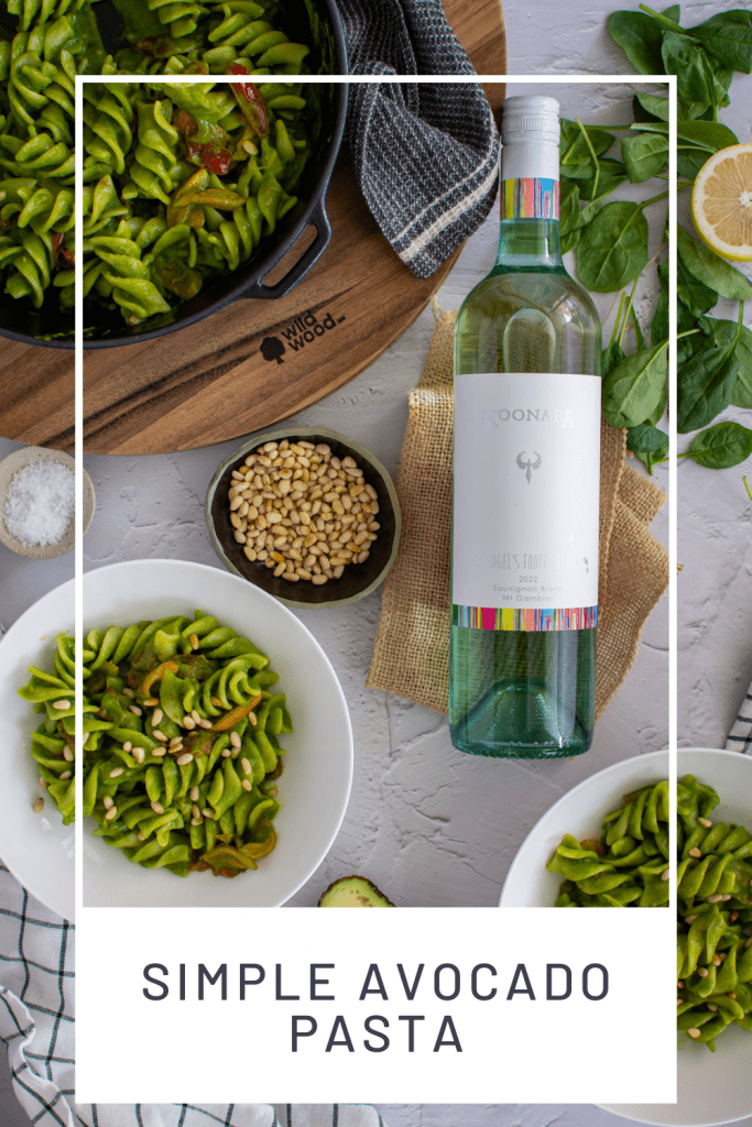Well, we have made a vegetarian/vegan pasta dish so it only seems fitting to find the best vegan wine we can to work with this delicious simple avocado pasta recipe. Luckily for us, my friends over at Koonara have such a drop! The Angels Footprints 2022 Sauvignon Blanc works an absolute treat!