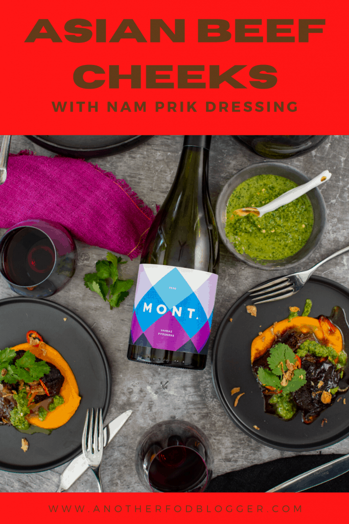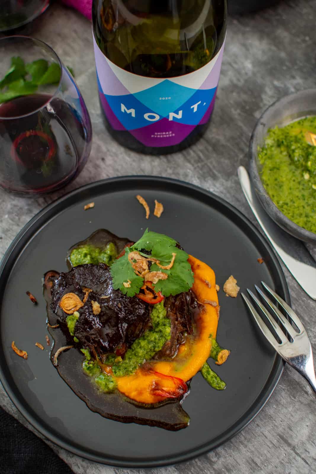 With these slow-cooked beef cheeks I actually made the dish long before I tasted the shiraz - it's only a recent release. Typically we think whites like rieslings for Asian food but I knew this needed a red that wasn't too full to stand up to the bold flavours of the slow-cooked beef cheeks. One that wasn't too high in tannins and had good fruit content and acidity too. Well, once I cracked a bottle of the Mont Wines Pyrennes Shiraz I knew it would pair a treat.