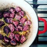 - when frying the meat do so in batches, this allows temperature of pot/pan to remain high, therefore caramelizing the meat and adding a nice crust rather than grey looking meat