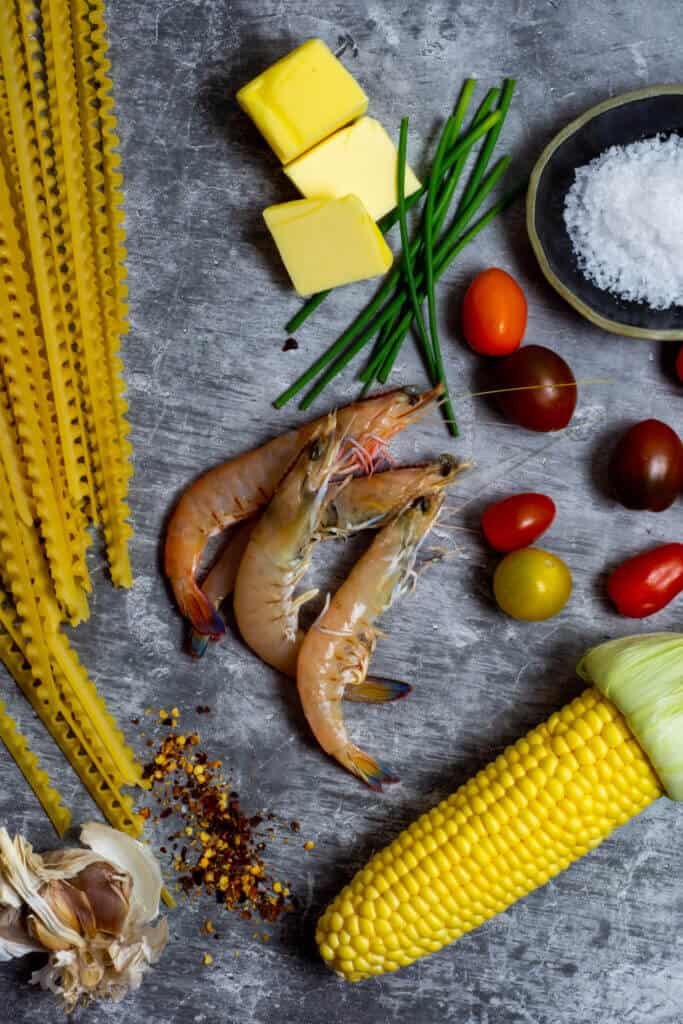 - don't worry about the corn and tomatoes being pipping hot, they will heat up again in the sauce/frying pan with prawns. You can make those elements in advance if serving for a dinner party